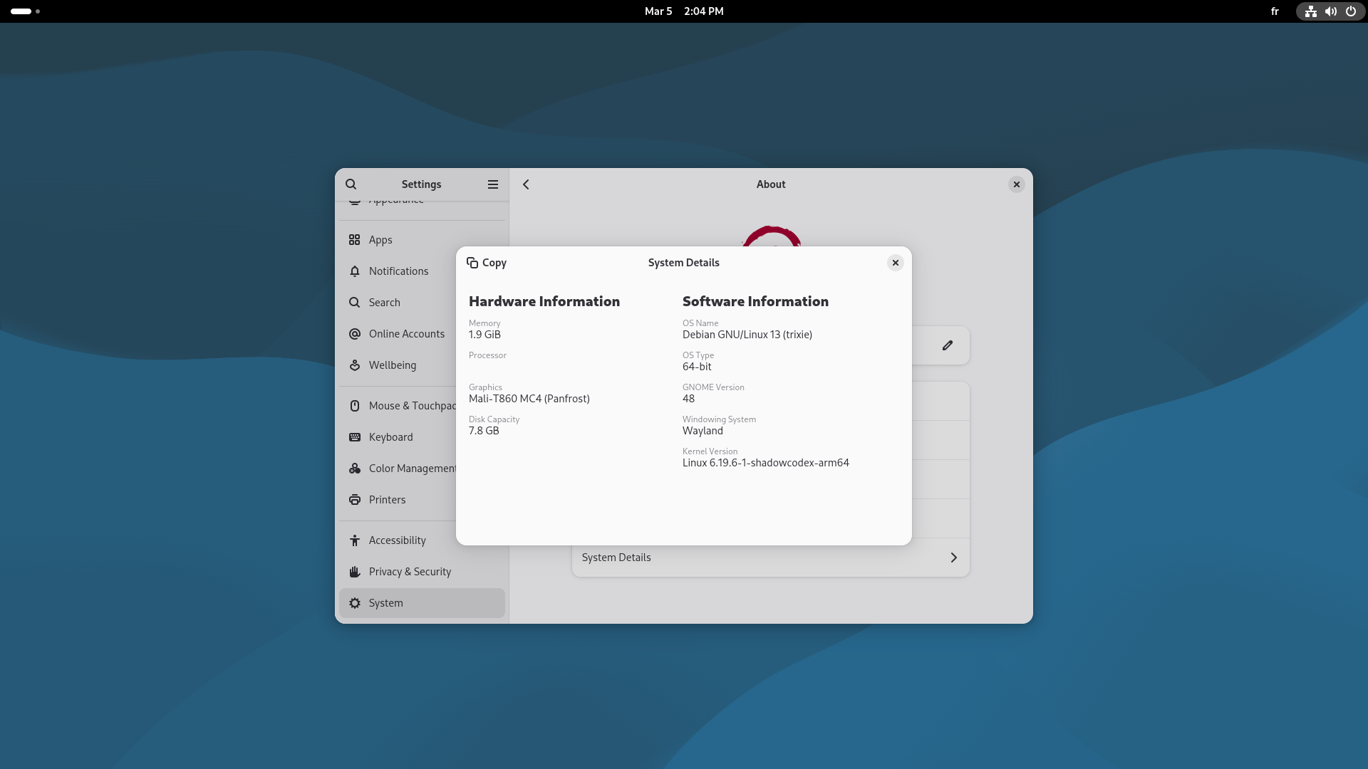 For further detail, the Shadow Ghost features an RK3399 SoC with six CPUs (four "Little" cores at 1.4GHz and two "Big" cores at 1.8GHz), 2GB of RAM and an ARM Mali-T860MP4 GPU. It is capable of hardware decoding VP9, H.264, and H.265, it includes a whopping 7.4GB of internal eMMC storage and runs by default on Yocto Dunfell, vendor Kernel 4.4.194-rockchip-standard. The device is entirely fanless and features very low power consumption (~15W). The RK3399 is a versatile SoC that was (and still is) commonly found in Android TV boxes, automotive head units, and handheld game consoles.